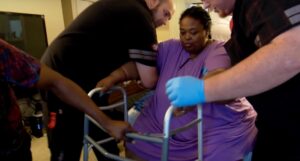 It appeared that she didn’t want to cooperate and refused to try to stand up as part of her recovery. Eventually, she was discharged.