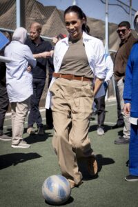 However, one of those activities has now left fans mocking Meghan Markle. As she and her husband visited the QuestScope Youth Center at the Za’atari refugee camp near Mafraq in northern Jordan, Meghan was seen kicking a football with some of the children.