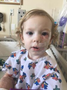 “They had a plan, but we knew we couldn’t expect the entire tumor to be gone & you can never mentally prepare yourself to see your baby cut all over their face with 100’s of sutures & tubes coming out of them. I look back on this 1st experience & my stomach goes in knots just thinking about the moment I held her in the operating room with the mask over her face & watched her eyes roll back in her head,” Jennifer wrote.