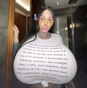 Despite the extreme nature of her surgeries, she often emphasized the personal satisfaction and confidence they brought her. “The biggest positive is my [love] life; my over-sized body parts make everything way more fun, and my surgeries, in general, have just become great for my business and brand,” she said.
